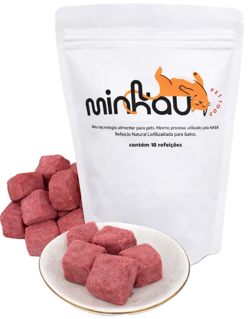 MinhauCat é alimento natural liofilizado: mais praticidade, mais palatabilidade e uma rotina mais leve pra você e pro seu gato.